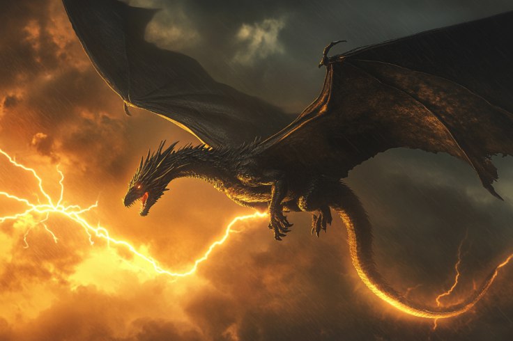 Более чем в два раза превосходящая по размерам пасть вцепилась в шею драконицы сбоку, а все четыре лапы — в её брюхо, принявшись яросто рвать и вырывать целые куски плоти вместе с чешуей. Она пыталась испускать ядовитый дым, в некоторой степени всё-таки действующий на Вортигерна, но всё было тщетно — дым уходил прочь, и из-за взмахов крыльев расходился прочь от сцепившихся драконов.