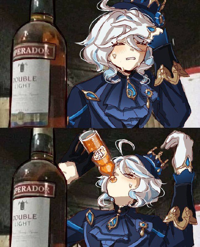 Ещё вчера всё было под контролем — её маска Архонта, её сцена, её город. Она играла свою роль, улыбалась, разыгрывала спектакли, и Кур-де-Фонтейн аплодировал. Но сегодня… сегодня меки взбесились, улицы превратились в поле боя, а люди, её люди, кричали от ужаса и боли. На её плечи упал груз, которого она уже не была уверена, что сможет вынести на сейчас раз. Клятва, данная так давно, что воспоминания о ней казались чужими, теперь давила, как каменная плита. Сдержать её? Защитить Фонтейн? Она сжала бутылку сильнее, её пальцы побелели, а в груди закололо от страха. Что, если она не справится? Что, если всё, что она делала веками, рухнет в один день?