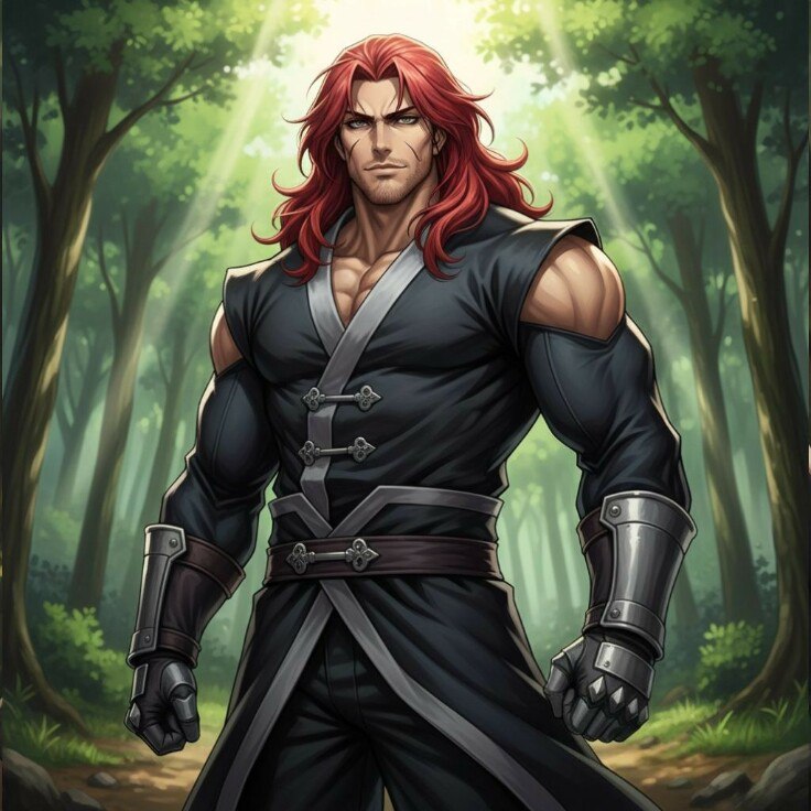 Больше всего появившийся передо мной образ походил на Томаса Андрэ из Поднятия Уровня, только несколько более «нидзявый», говоря иначе — сухощавый. Не слишком, конечно, ночастично стати американского охотника национального уровня порезали. Ну и волосы — алые как огонь. И без бородки.