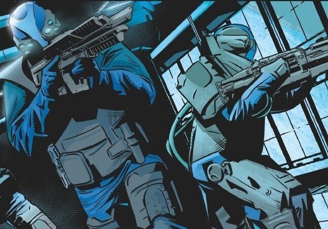 Глубоко вдохнув, я медленно зашагал в сторону голоса, Бекка с хмурым лицом двигалась следом. Момент вышел просто пиздец напряжённым, и я был готов ко всему, но вроде бы обошлось. Завернув за поворот, я натолкнулся на две выставленные в мою сторону пушки, но ни одна из них так и не выстрелила. Спустя пару секунд разглядывания друг друга, стоящая впереди Мелисса Рори, единственная девушка в отряде и по совместительству видимо ещё и командир, опустила свой пистолет и достала небольшой виртуальный планшет.