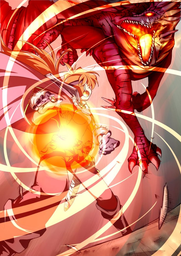Покуда Лина произносила слова воззыва к Элементалю Огня, дракон тоже обнаружил гигантское сосредоточение магической энергии, и проигнорив две сражающиеся армии, которые к тому же взяли небольшой перерыв из-за появления равного мне по размерам красного собрата, и последний направился к нам, прямо на лету распахивая пасть.