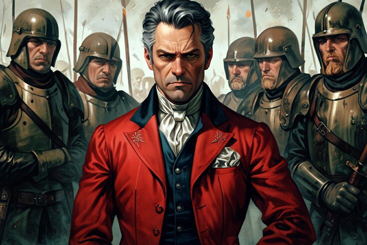 Раздражённый и разозлённый инспектор с отрядом из десяти солдат зашёл на территорию замка. Это был мужчина лет пятидесяти, с надменным, одутловатым лицом, обветренной кожей и маленькими, бледными глазами, которые злобно щурились из-под густых, нависших бровей. Его тщедушная фигура, облачённая в дорогой, но испачканный в дороге камзол, казалась ещё более невзрачной по сравнению с мощными доспехами его же солдат. Седеющие волосы, заплетённые в неуклюжую косичку, растрёпанную ветром, и тонкие, поджатые губы, сложенные в вечную гримасу недовольства, завершали портрет человека, привыкшего к подобострастию окружающих его людей и мгновенно выходящего из себя от любого неповиновения.