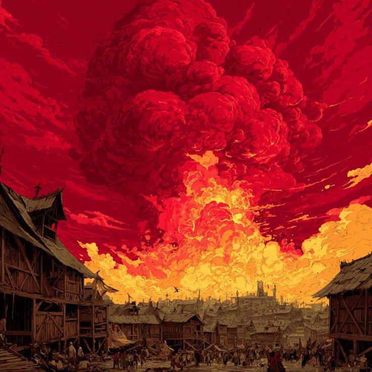 Однако прежде чем тот успел закончить, земля под ним разверзлась, и каждого из присутствующих обдало невыносимым жаром. Бедняга даже не успел закричать — его тело мгновенно исчезло под слоем магмы, издав лишь короткое и лаконичное " Бульк …".