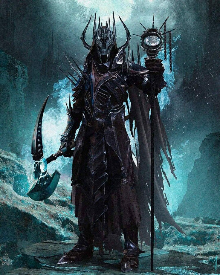 Оно носило шлем без глазных прорезей, с четырьмя прямыми, торчащими вверх, зубцами. Странной, вытянутой формы. Человеку такой не подходил. В нижней его части, где должно было открываться лицо, виднелась металлическая оскаленная пасть. Остальной доспех, состоящий из набора тяжелых пластин и тканной рванины, выглядел не лучшим образом. Его покрывали многочисленные, свидетельствующие о множестве битв, следы. Вмятины, сколы, царапины и зарубки. Оружие, с другой стороны, выглядело превосходно и ухожено. Большой одноручный топор, с длинным лезвием и непропорционально длинным клевцом, покрывали переполненные мощью письмена. Особенно много их было на пробойнике. Посередине, меж двумя сторонами, зияла дыра. А в ней крохотная сфера, не больше ногтя размером. От нее разило неестественно огромной мощью, будто от не самого маленького источника магии. Но из-за ее нестабильности, топор то и дело покрывали вспышки синего пламени. В левой руке существо сжимало тонкое древко посоха. Прямого, отлитого из металла. Навершием ему служила кристаллическая сфера, покрытая металлом так, что отчетливо походила на глаз, око. Образ дополняли торчащие вверх “ресницы” — узкие, вытянутые штыри.