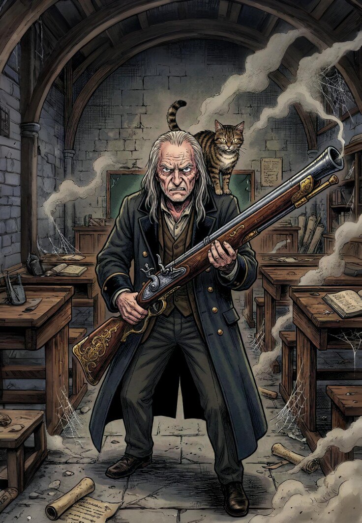 Стоило Вещи разобраться с зачарованным замком, как Дафна ударным заклинанием открыла дверь, а Аргус Филч, проигнорировав скрип в дверных петлях и коленных суставах, сделал «боевой прыжок», на ходу наводя однозарядный мушкет на цель. Волдеморт не успел и глазом моргнуть, когда раздался выстрел.