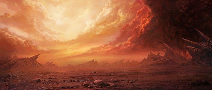 По большому счету местный ад один в один повторял то, что представляло большинство верующих, когда им говорили о загробном мире. Бескрайние каменные пустоши, простиравшиеся на сотни миль вокруг, с гуляющими по ним горячими ветрами, закручивающимися пепельными вихрями и виднеющимися вдалеке отрогами багровых гор. Тяжёлые, рыжие облака, в любой момент готовые низвергнуться мерзким маслянистым дождём, способным разъесть плоть и, со временем, растворить металл, были последним штрихом в местном пейзаже.
