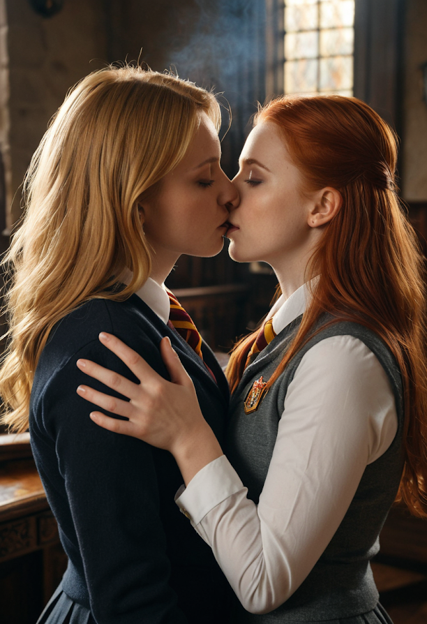 Джинни была в списке. Гарри давно положил на нее глаз. Ее огненные волосы и атлетичное тело были отличным контрастом деликатного, бледного тела Ханны и бомбезного тела Сьюзен. Ему стало интересно, какого это трахать ее маленькое тело, когда она зажата между ним и Сьюзен, когда ее стоны уходят в ее рот, пока он трахает ее сзади. А какой будет взгляд, когда она поймет, что и Сьюзен тоже его? Он будет бесценным.
