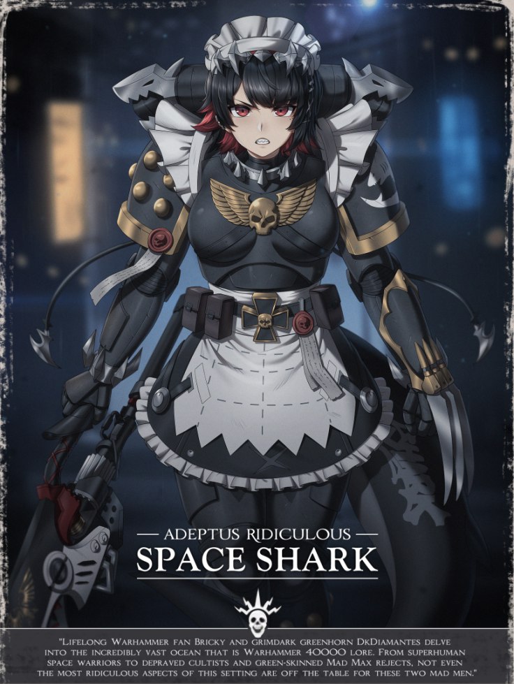 …А на картинке была изображена человеческая женщина-воительница в необычной, похоже на их собственную, и при этом явно имперской силовой броне… При этом явно являющаяся каким-то видом нелюдей, схожих с фелинидами, признанными Императором как часть человечества. Вот только вместо ушей, хвоста и шерсти — у неё имелся длинный акулий хвост, и не менее акульи, острые зубы…