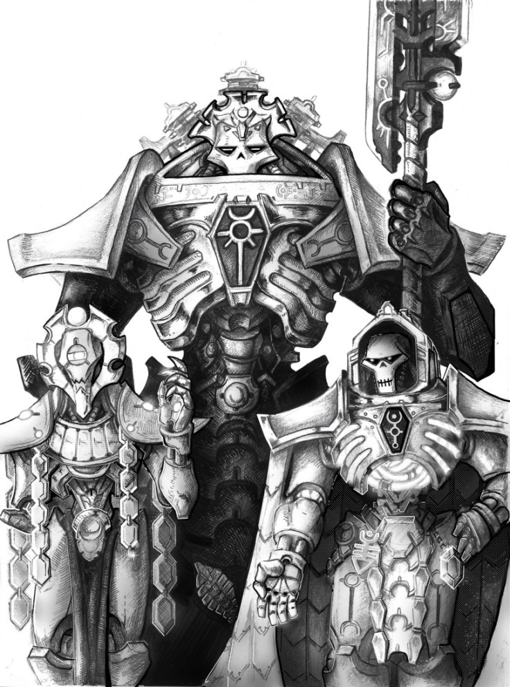 Облачённые в пёстрые одежды, совершенно непривычные культуре их собственной расы, так и некронам, они стояли с невозмутимостью, достойной лучших стражей гробниц. На миг можно было даже подумать, что они не существа из плоти и крови, а также состоят из некродермиса.
