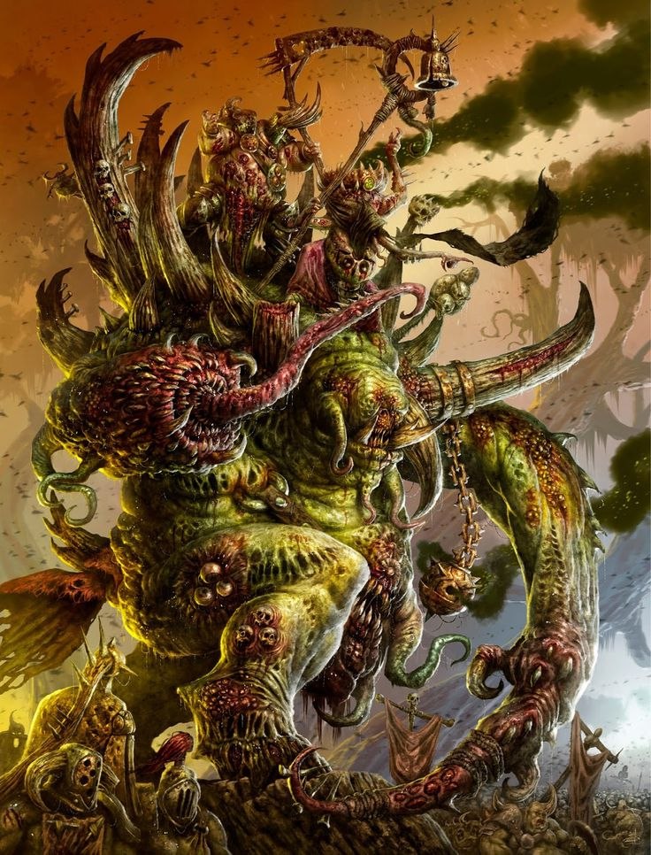 А вдали стал вылезать из ядовитого тумана болезненных испарений гигант, превосходящий в размерах даже Кровожадов Кхорна и Хранителей Тайн Слаанеш — Великий Нечистый.