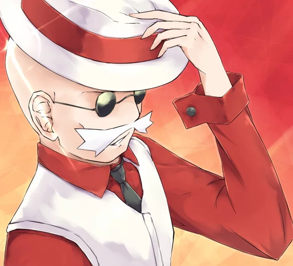 Сам же джентльмен был облачен в красную рубашку классического кроя, рукава которой украшались странными черными запонками, белую жилетку, что так удачно гармонировала со шляпой мужчины, да в просторные бежевые брюки, слегка топорщащиеся в области колен, словно под ними были пусть и небольшие, но наколенники. И, конечно, главный атрибут: небольшие солнцезащитные очки, что, казалось, были лишь немногим больше глаз Блейна, однако прекрасно справлялись с основной своей задачей: скрывали его взгляд. Полностью.