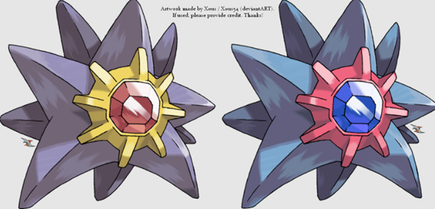 Измотанный котяра, чья шерсть была покрыта тонким слоем песка и пыли, бессовестно дрыхнущий в столь чудесное утро… Чек. Пара сконцентрированных гигантов, один из которых медитирует в окружении парящих в воздухе потоков лавы, а вторая чахнет над непонятного назначения водной сферой, внутри которой переплетаются в нескончаемом танце сотни голубеньких ниточек — чек. Выползшие из морской пучины фиолетовые звезды, причем столь же похожих, сколь и отличных друг от друга — чек… Да, как тут не «чек», если их тренер самым натуральным образом взвизгнула, тут же рванув осматривать измененного покемона.