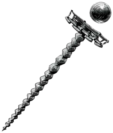 Траурное молчание водрузилось во дворце. Готовые вот-вот разразиться ругательствами, проклятиями, а то и вовсе заклинаниями, считающие себя униженными гильдейские игроки с ужасом распахнули глаза, видя, как оружие божественного класса в руках ниндзя сменяется красивейшим резным жезлом, из черного металла, покрытого различными рунами. Аккуратное древко словно состояло из сплавленных между собой камушков, большего размера у навершия, и меньшего у основания. В самом его конце находился рунический диск, над которым, вместо привычных камней или кристаллов, витал небольшой шарик, подвешенный прямо в воздухе.