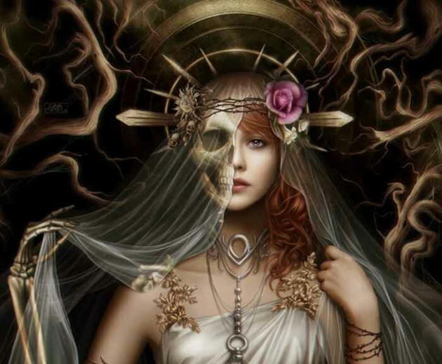 Но вот, издав недовольный вопль, и пророкотав что-то на неизвестном языке, напоминающим помесь шведского и норвежского, Хела полыхнула аурой холода, тотчас проморозив призванные ею же растения, обратив их в ледяных элементалей. Украшавшая голову девушки фата трепыхалась на незримом ветру, пока, наконец, часть ее не закрыла правую половину лица Богини. Сквозь прозрачную белесую ткань на обидчиков взирал череп. Совсем безынтересно, со скукой и ленцой.