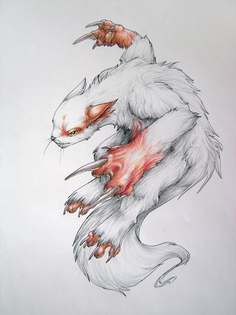 Шипя и скалясь, из проема выпрыгнуло красно-белое пятно, которое Бруно с грацией танцора пропустил мимо себя, совершив пару невесомых шажков. Шажок в сторону, перестановка ног, плавный разворот корпуса, и резкий выпад конечности в конце. Как итог, в вытянутой руке Бруно повис ошарашенный хорек, покрытый сероватой, местами сваленной шерстью, с красноватыми узорами на концах лап и на мордочке. Особо выделялись два огромных кинжала-когтя на передних лапах покемона. Учитывая продемонстрированную скорость, будь на месте Бруно обычный человек, он наверняка бы уже свалился с разодранным горлом.