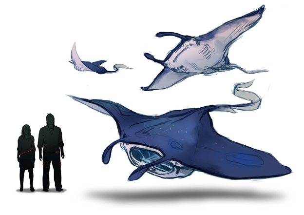 Скат планировал на своих плавниках словно птица, не ведая разницы между водой и воздухом, пока бедняга делибёрд изо всех сил старался не рухнуть вниз. Головы всех зрителей были обращены вверх, ведь летающие рыбы — уникальное для Канто зрелище, полюбоваться на которое можно далеко не каждый день. А скат тот был действительно красив: массивный торс с парой огромных плавников, длинный изящный хвост, обращающийся в коралловую ленту на конце, да пара усиков, висящих прямо над огромной пастью, в которую с легкостью уместится даже человек. И окрас… Нижняя часть тела, брюшко то есть, имела нежный, бледно-лавандовый цвет, но вот верх… Спинка покемона напоминала ночное небо, отражаемое в водной глади. Глубокий синий оттенок с россыпью белых точек — звезд. Завораживающее зрелище, особенно на фоне движущегося к закату солнца, только-только начавшего окрашиваться в багрянец.