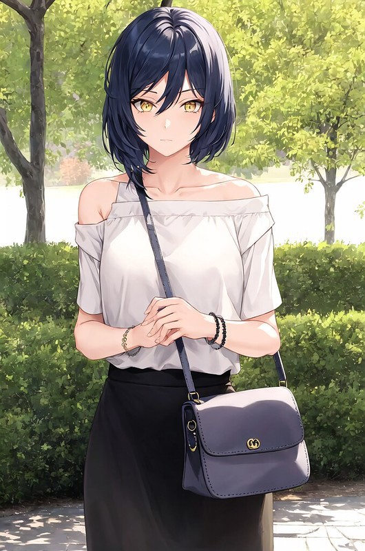 С тропинки, проходящей по правую от меня руку, сошла Эрика, облаченная в бежевую блузу и строгую черную юбку. Она словно готовилась к собеседованию в какую-то корпорацию, нежели к увлекательной прогулке по пышущим жизнью районам, отданным под фестиваль. Распущенные темно-синие волосы все также образовывали практически идеальное каре, и лишь одинокая прядка челки свисала меж пары светло-карих, практически янтарных глаз.