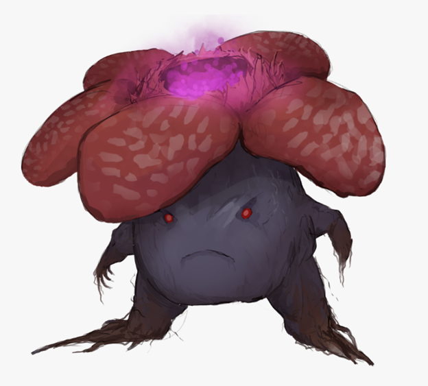 Этот синий малыш, в отличии от виденных мною ранее, имел полноценные, пусть и рудиментарные, но конечности. Что странно. Обычно глумы вместо конечностей используют сплетение корней или цельные корневища, а здесь же натуральная плоть, скорее всего состоящая из грибного мицелия, как и остальная тушка покемона.