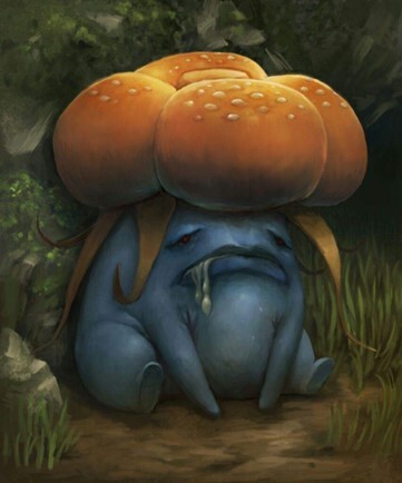 Эрика вытащила, буквально за «подмышки», еще один гриб, но уже не имеющий ни цветочных корневищ, ни лепестков. Сравнительно небольшой, метр в высоту и столько же в ширину, в основном из-за широкой шляпки, покемон был поставлен на землю, представ перед нами во всей красе. Вайлплюм — развитая форма глума, является, по своей сути, огромным ядовитым грибом, выбрасывающим огромное облако спор при малейшем раздражении. И если из «лепестков» его грибной шляпки выделяются сравнительно безобидные споры, обеспечивающие полный паралич, а при высокой концентрации еще и деградацию центральной нервной системы, то вот из углубления в центре шляпки могу появиться и крайне ядовитые соединения, с огромной скоростью превращающие источник раздражения в обед… Вайлплюмы, как и прочие растения, отлично переваривают свежий перегной.