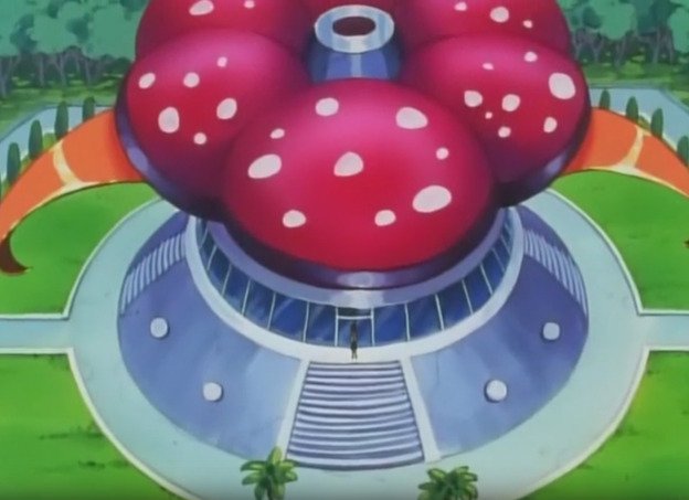 Догадка подтвердилась почти сразу же. Все же на территории лабораторий, хотя больше это походило на заповедник, мы были далеко не одни. Первая же попавшаяся на пути леди подтвердила, что необычное центральное здание — ничто иное, как стадион травяных покемонов Эрики.