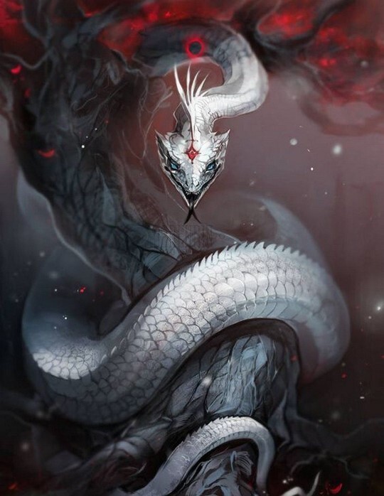 Белая змея не уступала в размерах Силигну — черной кобре, что лишь защищал свое потомство, а также мстил за павших детенышей. Она глядела на кота в ответ холодным, пробирающим до самого нутра взглядом. Опутав широкими кольцами ствол дерева, что практически полностью покрылось белой каменной коркой от одного лишь прикосновения к чешуе змеи, она глядела своими лазурными очами, казалось, в самую душу Сириуса, иногда приоткрывая пасть, дабы мимолетным движением высунуть черный раздвоенный язык наружу, попутно демонстрируя несколько аккуратных рядов белых зубьев, без единого клыка. Красный знак в виде неровного фигурного ромба, расположенный на ее стреловидной голове, украшенной скромным, по сравнению с капюшоном Силигна, «хохолком» из острых белых шипов, медленно пульсировал красной же энергией, оповещая об опасности любого, кто знаком с силами змеи, ведь в любую секунду ближайшая сотня метров вокруг Аиши может быть «обезвожена». Любое живое или не очень существо, несущее в себе хоть каплю темной энергии, попав под действие яда царицы змей, может обратиться в лишенный этой самой энергии камень по одному лишь желанию пресмыкающегося, и именно этого яда так опасается Охотник. И надо ли упоминать, что абсолютно вся территория Аиши этим ядом пропитана, и дело здесь лишь в радиусе ее восприятия.