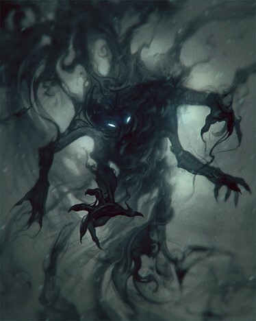 Змей не стал слушать жалкие, по его мнению, оправдания пришельца, посмевшего привести на их земли чужака, убившего не один десяток детенышей. Едва различимое движение, и на месте, где ранее стоял кот уже находится змеиная голова, клыки которой вгрызаются в черную землю, а жар из пасти заставляет ту стремительно раскаляться и истаивать, словно лед, обращаясь черным дымом. Отростки с ядовитыми клинками на концах беспорядочно били во все стороны, оставляя на многострадальной почве и деревьях глубокие борозды, сочащиеся красным ядом, одного касания которого достаточно чтобы твердая темная материя начала активно дымиться, разлагаясь.