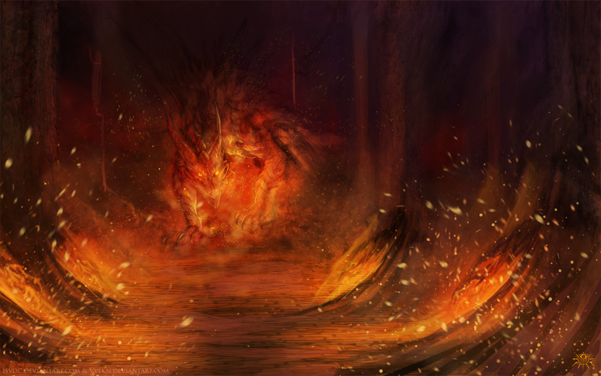 Несколько секунд ящер извергал из своей пасти мощный поток ревущего огня, до тех пор, пока в легких его не закончился запас кислорода.