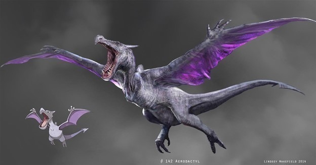 Не долетев до нас нескольких сотен метров, из дирижабля выпрыгнул человек, который в полете призвал покемона, и, оседлав его, полетел в нашу сторону. Когда тот был достаточно близок, я смог распознать в его покемоне аэродактиля — покемона относящегося к классу ископаемых. Внешне тот напоминал серокожего динозавра, с большими фиолетовыми перепонками между передними лапами и телом, что выполняли функцию крыльев. Приземлившийся покемон оказался достаточно большим — два метра от земли до кончиков роговых наростов на голове.