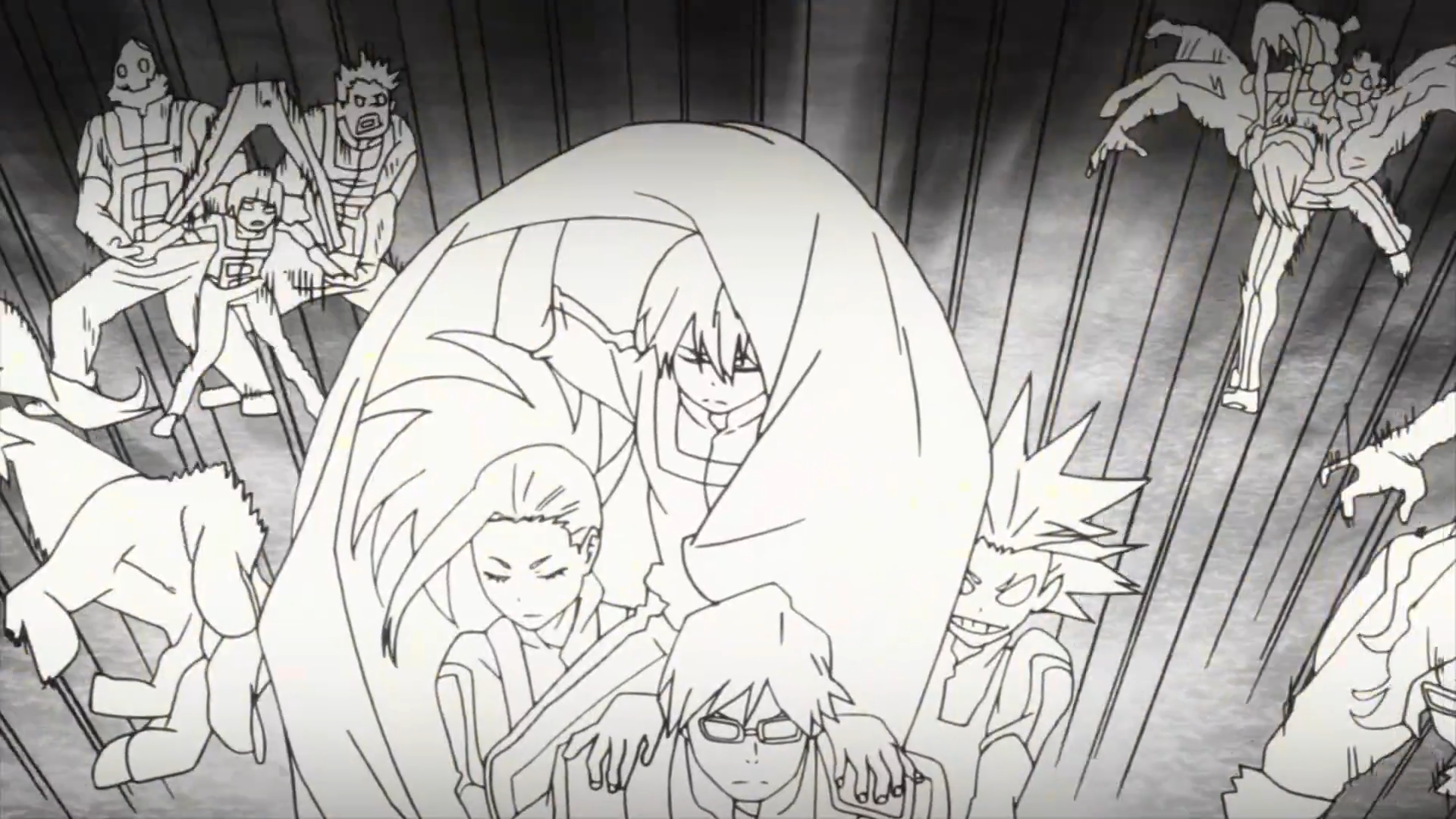Тем временем пережившая наводнение команда Тодороки воспользовалась появившейся на арене влагой. Каминари взял да вдарил током на полную.