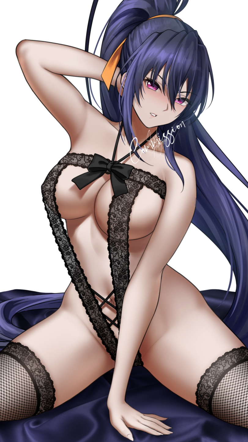 Дверь в спальню приоткрылась, и моему взгляду предстала Акено, одетая в похожее черное боди, как и у Риас. Скорей всего, белье они покупали в одном и том же бутике. Правда, вариант Акено давал меньший простор для фантазии, обнажая больше участков кожи. В дополнение же чертовка одела черные сетчатые чулочки, что выглядели на ней невероятно горячо…