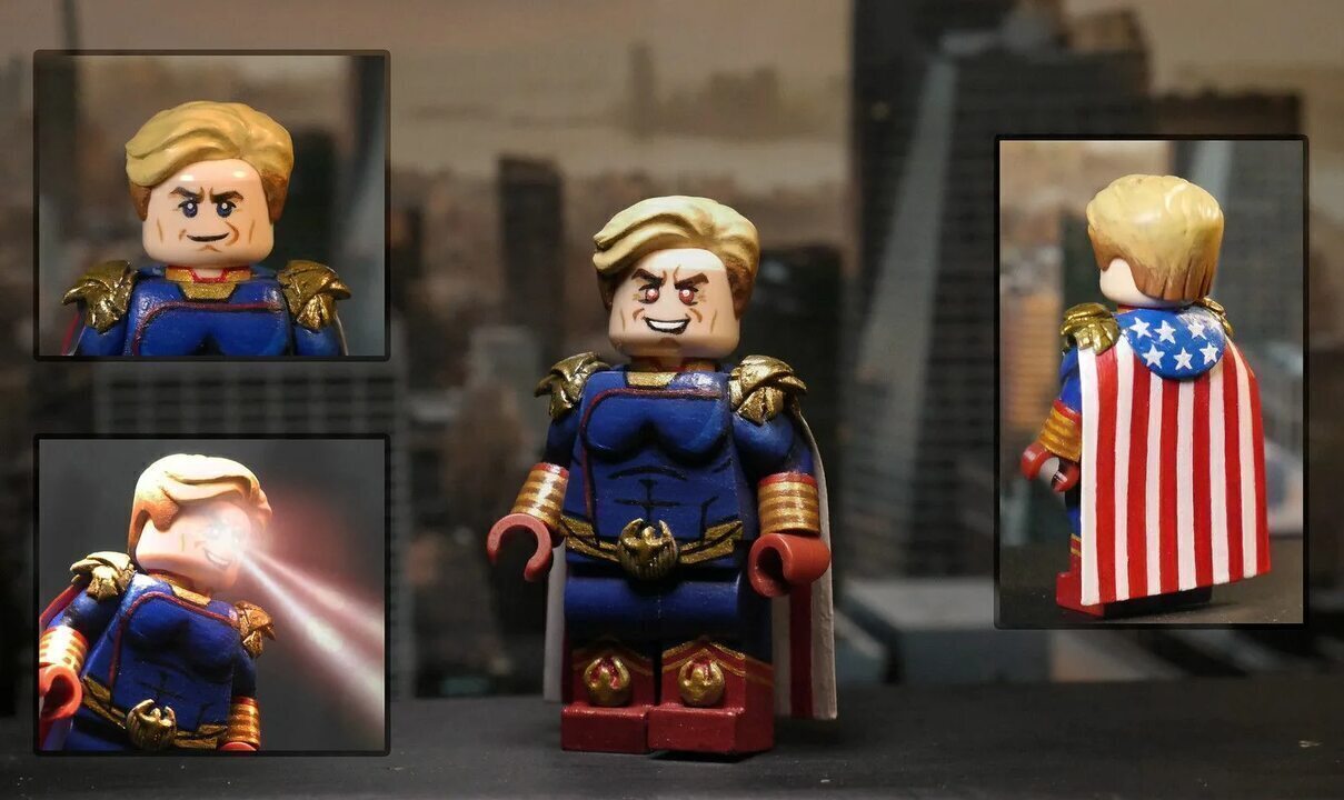 А дальше пошла сценка, где Хоумлендер в виде лего фигурки арестовывает преступника в полосатой майке. После чего отдает вора полицейским, чтобы затем помахать всем и улететь ввысь. Нас вновь возвращают к матери с ребенком: