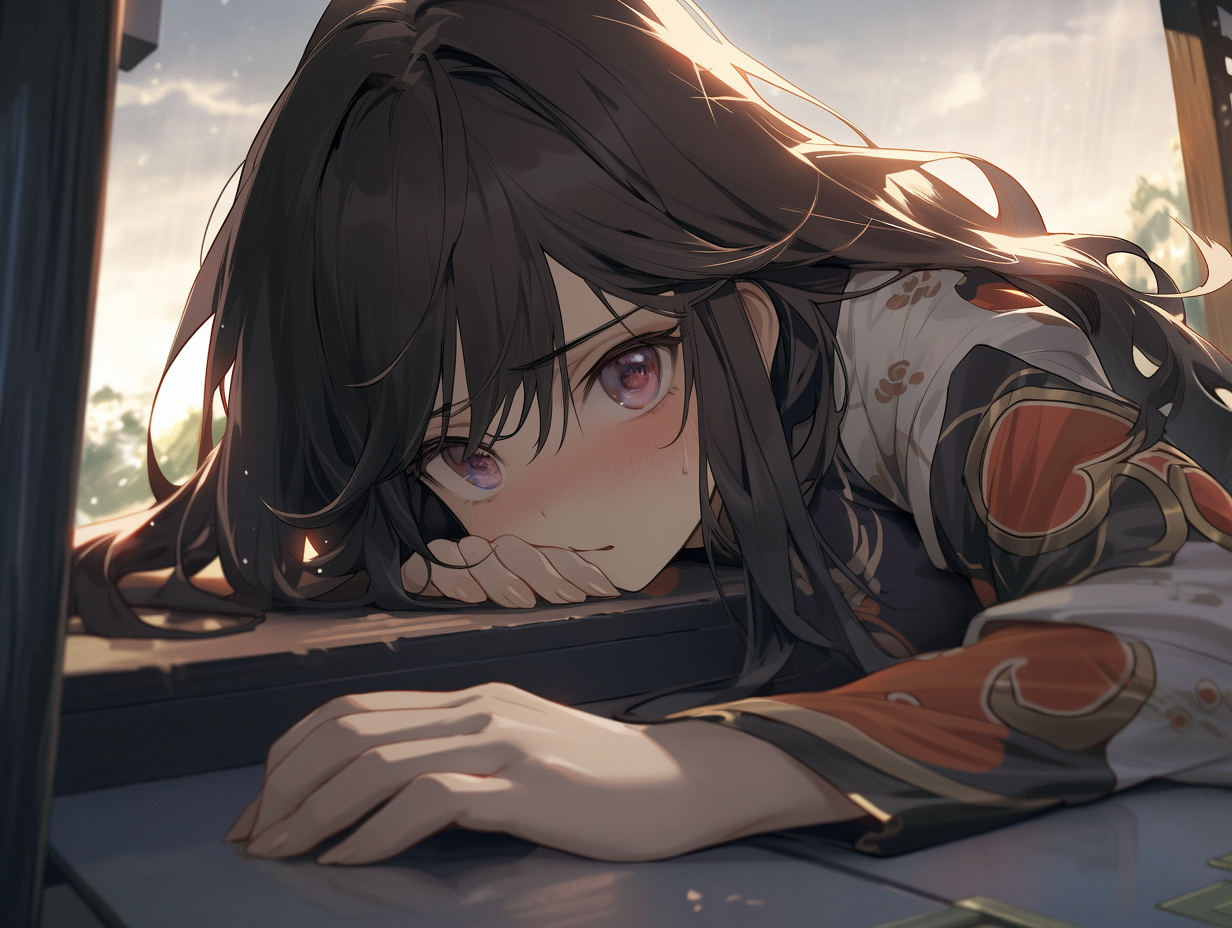 Проснулась вечером. Последние солнечные лучи окрасили в огненно-красный цвет блондинистую шевелюру спящего Альбедо. Он так трогательно подложил под щеку ладошки. Выглядит настолько мило, у меня защемило сердце от нежности. Захотелось со страшной силой провести пальчиком по дугам бровей, по ровной спинке носа, обвести абрис безупречных губ.