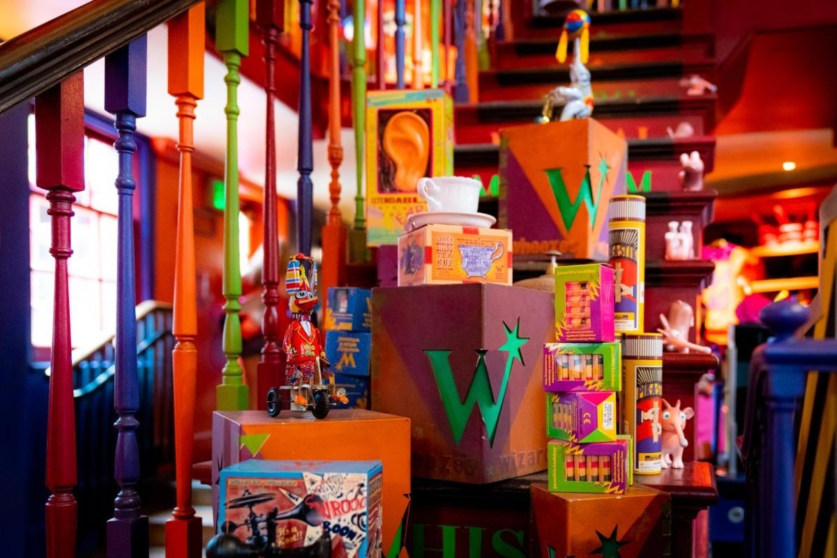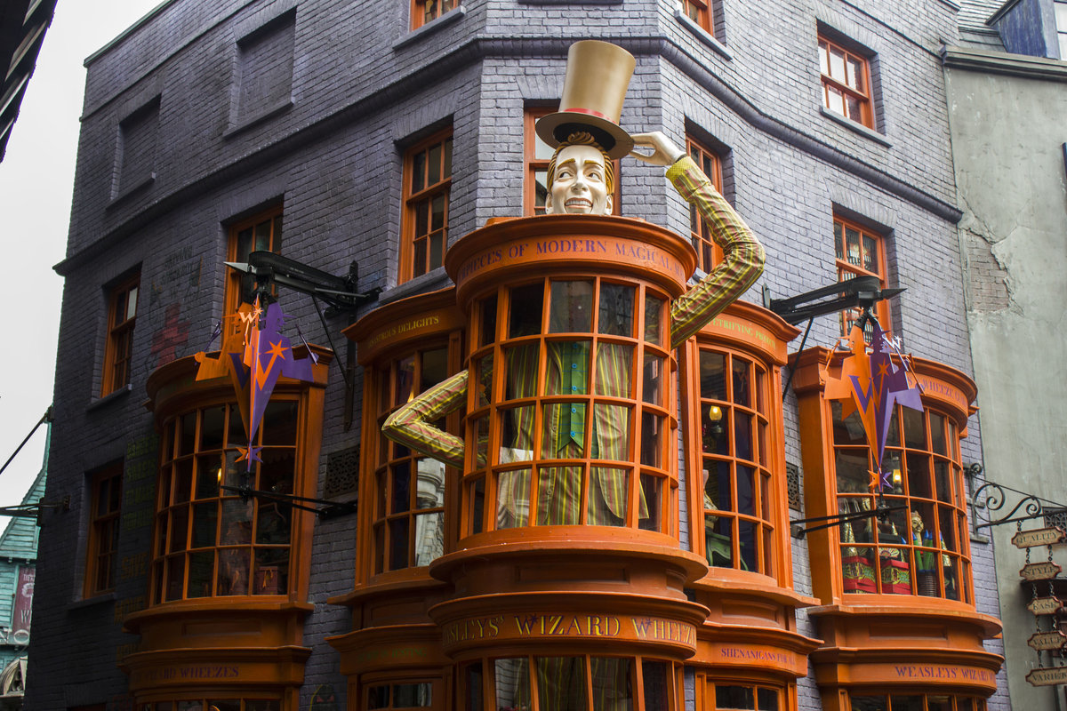 Витрина магазина близнецов Уизли, что называется «била по глазам», словно фейерверк. Она сверкала невероятным разнообразием товаров, которые подскакивали, вертелись, светились, прыгали и пищали. Даже больно было смотреть на эту пестроту. Практически все прохожие останавливались перед ней хотя бы ненадолго, словно зачарованные, не в силах отвести от нее глаз. А потом, уходя, еще несколько раз оглядывались.